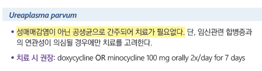 2023년 질병관리청 & 대한요로생식기감염학회에서 발표한 [성매개감염 진료지침]에서는 유레아플라즈마 파븜을 이렇게 설명합니다.